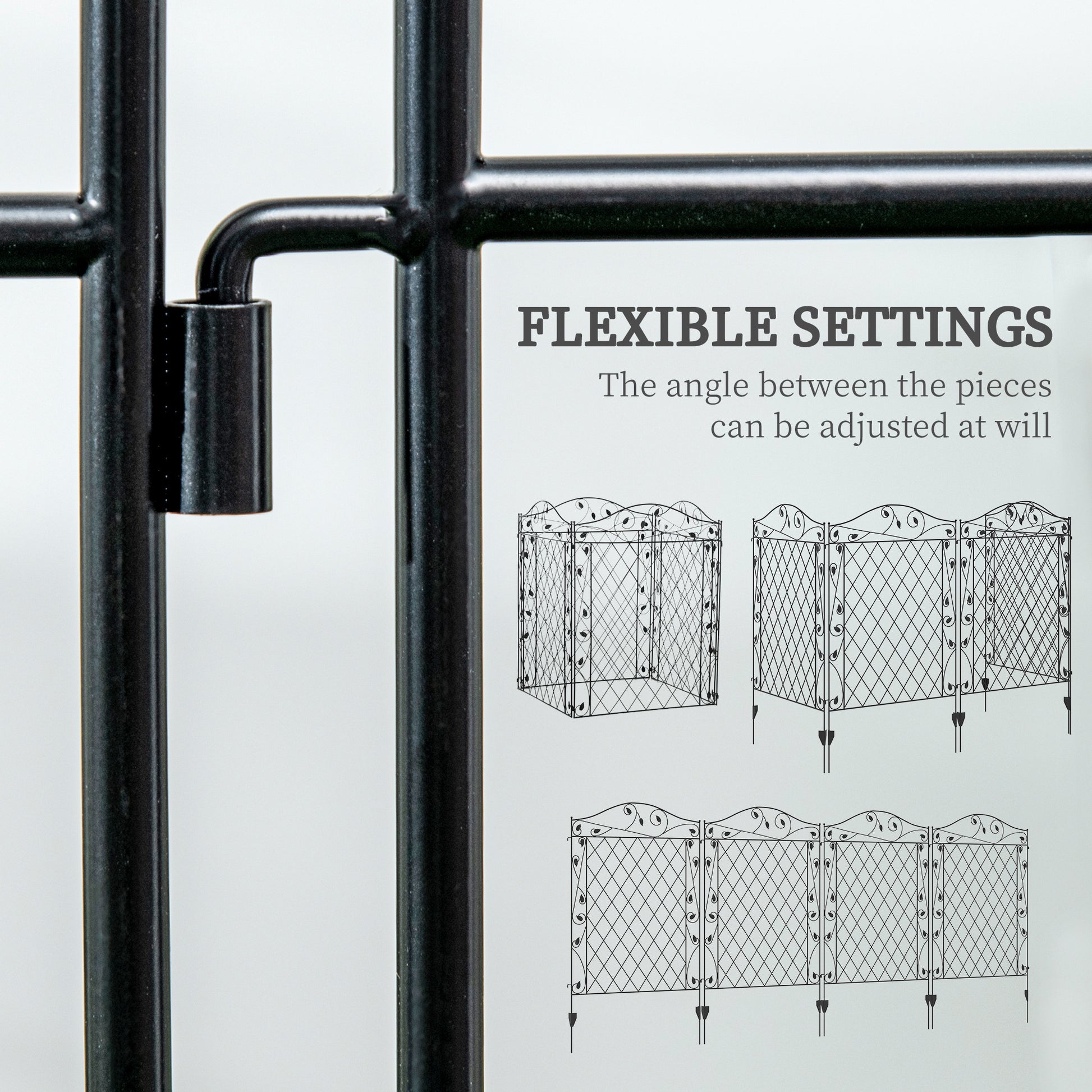 Outsunny Garden Fence, 4 Pack Steel Fence Panels, 11.5' L X 43" H, Rust Resistant Animal Barrier Decorative Border Flower Edging For Yard, Landscape, Patio, Outdoor Decor, Wavey Vines Black Steel