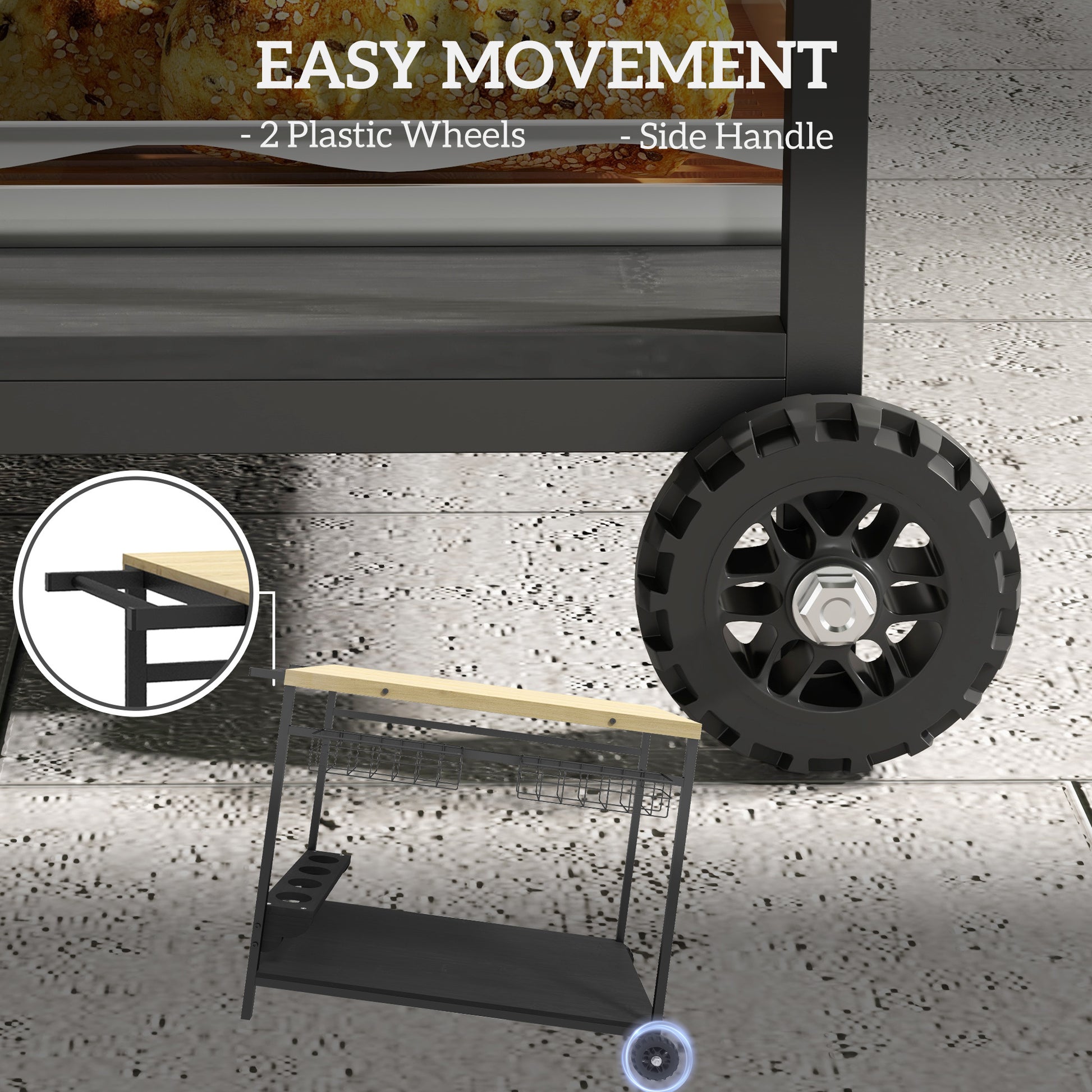 Outsunny Outdoor Bar Cart, Patio Rolling Serving Cart With Wheels, Side Handle, 2 Baskets, 4 Wine Holders For Garden, Dining Room, Natural Natural Wood Wood
