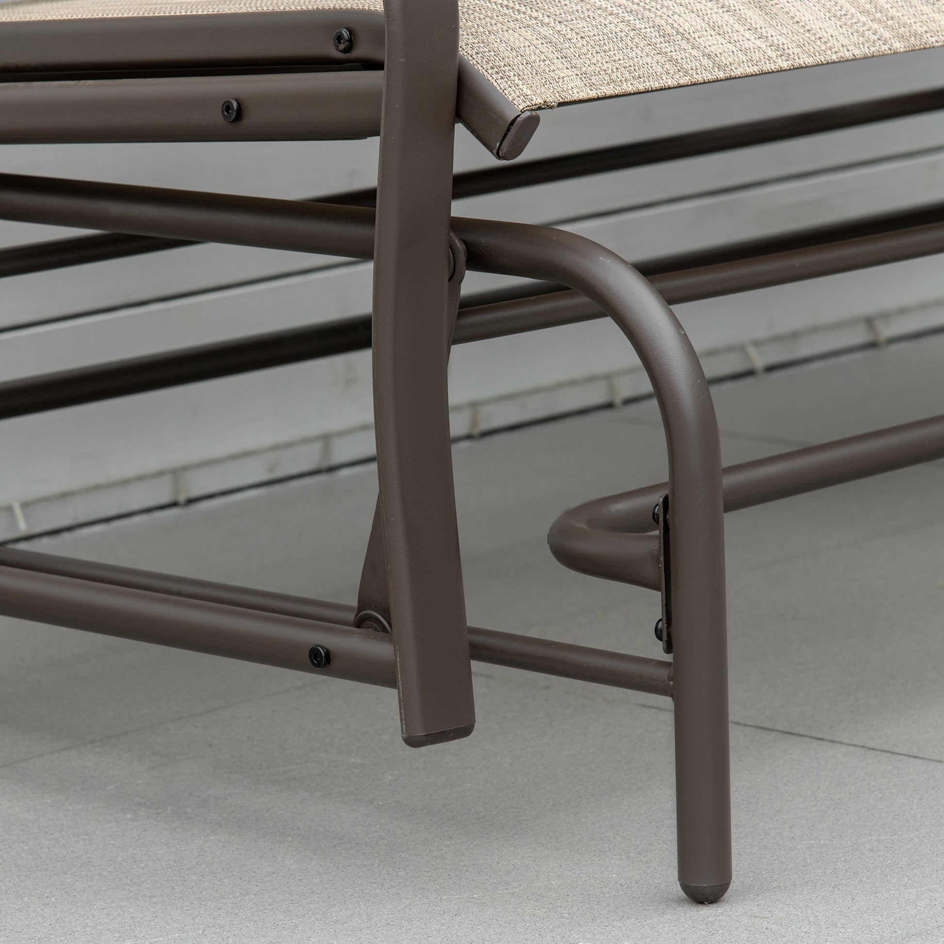 Outsunny Outdoor Glider Bench With Center Table, Metal Frame Patio Loveseat Withmesh Fabric And Armrests For Backyard Garden Porch, Brown Brown Steel