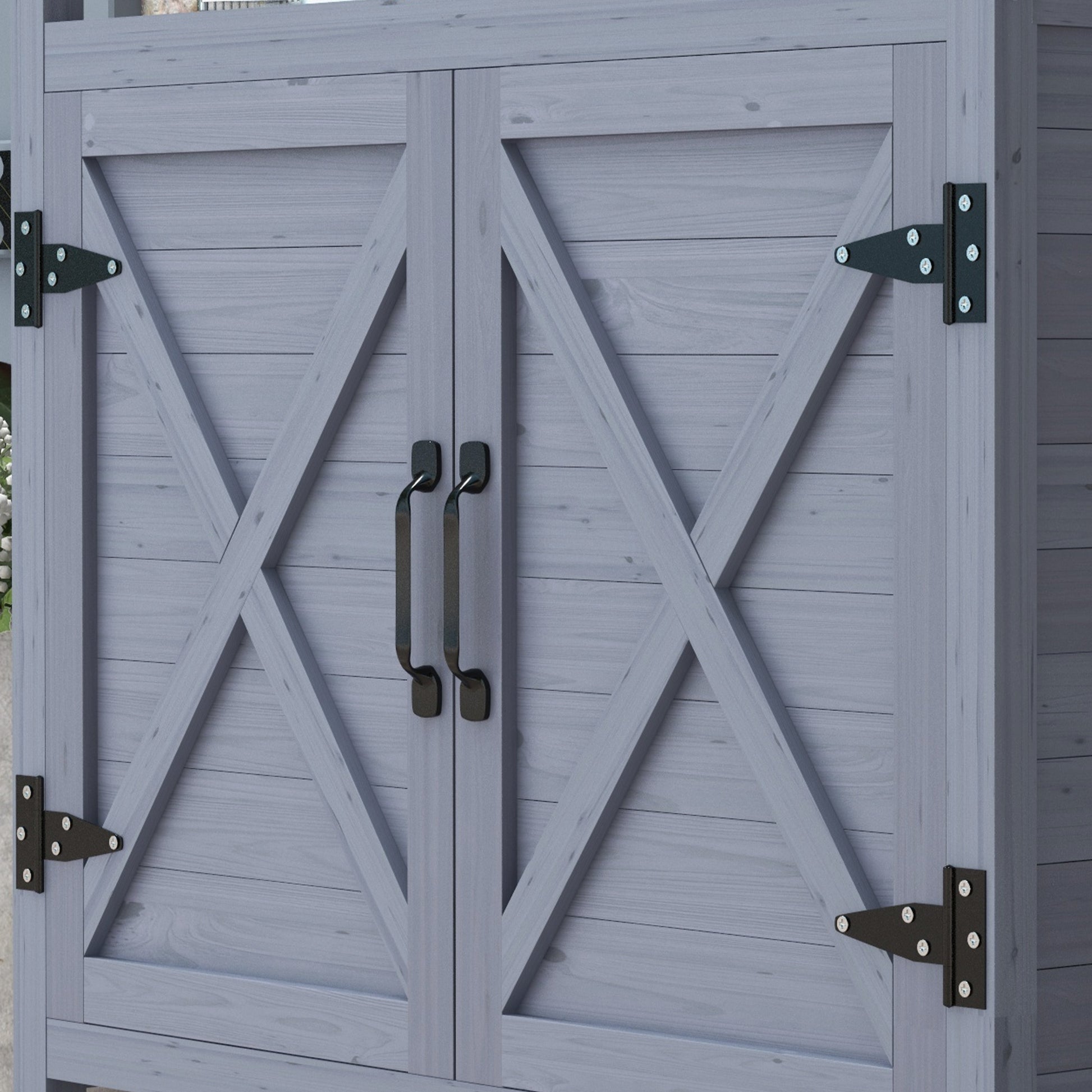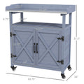 Outsunny Outdoor Potting Bench, Wooden Potting Table With Storage Cabinet, Aluminum Table Top, Rubber Wheels For Backyard, Patio, Balcony, Gray Gray Wood