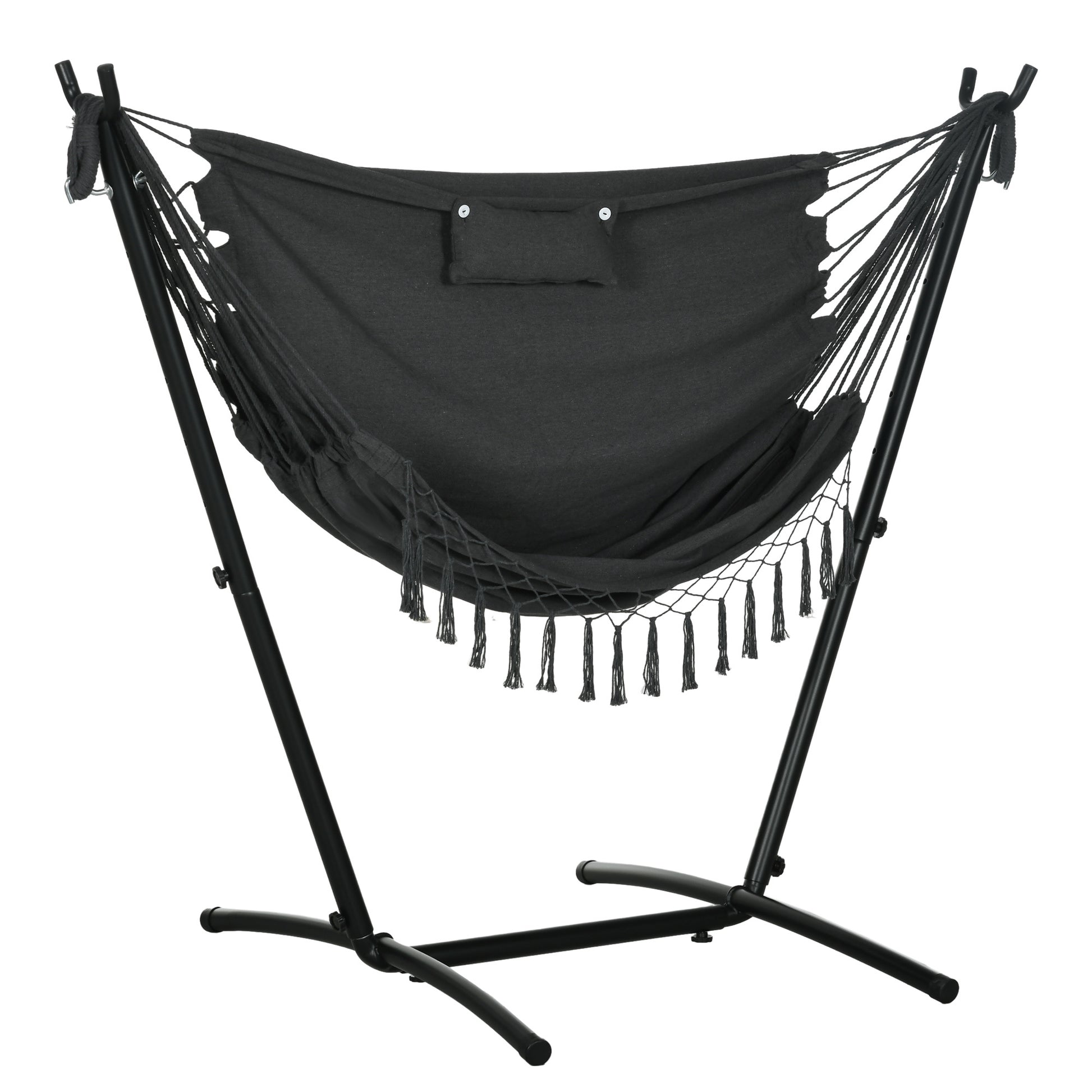 Outsunny Patio Hammock Chair With Stand, Outdoor Hammock Swing Hanging Lounge Chair With Side Pocket And Headrest, Dark Gray Gray Steel