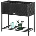 Outsunny Raised Garden Bed, Elevated Planter Box With Rattan Wicker Look, Tool Storage Shelf, Portable Design For Herbs, Vegetables, Flowers, Black Black Rattan