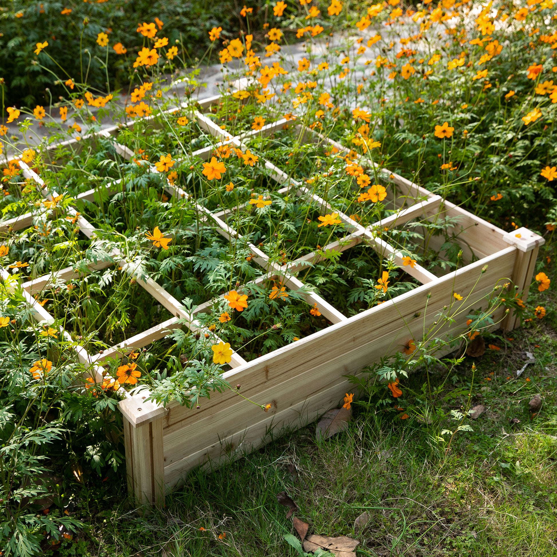 Outsunny Raised Garden Bed Kit, 4' X 4' Outdoor Wooden Planter Box With 9 Growing Grids, For Plants And Herbs Natural Wood