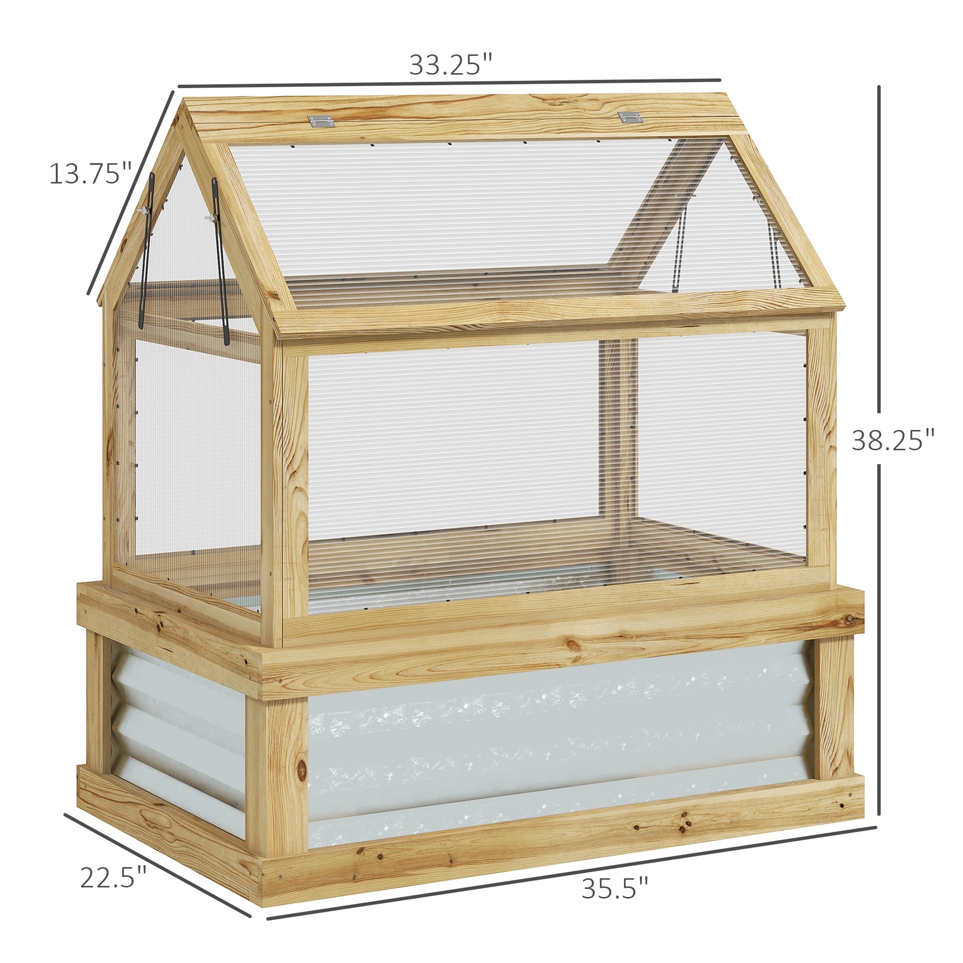 Outsunny Raised Garden Bed With Polycarbonate Greenhouse, Wooden Cold Frame Greenhouse, Garden Flower Planter Protection, Peak Roof, 35.5" X 22.5" X 38.25", Natural Natural Wood Wood