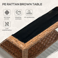 Outsunny Rattan Side Table, Outdoor End Table With Storage Shelf, Aluminum Frame Square, Coffee Table With Tempered Glass Top, Sand Black Brown Aluminum