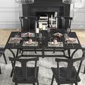Outsunny Rectangle Outdoor Dining Table For 6 People, Steel Rectangular Patio Table With Umbrella Hole, Steel Frame For Garden, Balcony, Black Black Steel