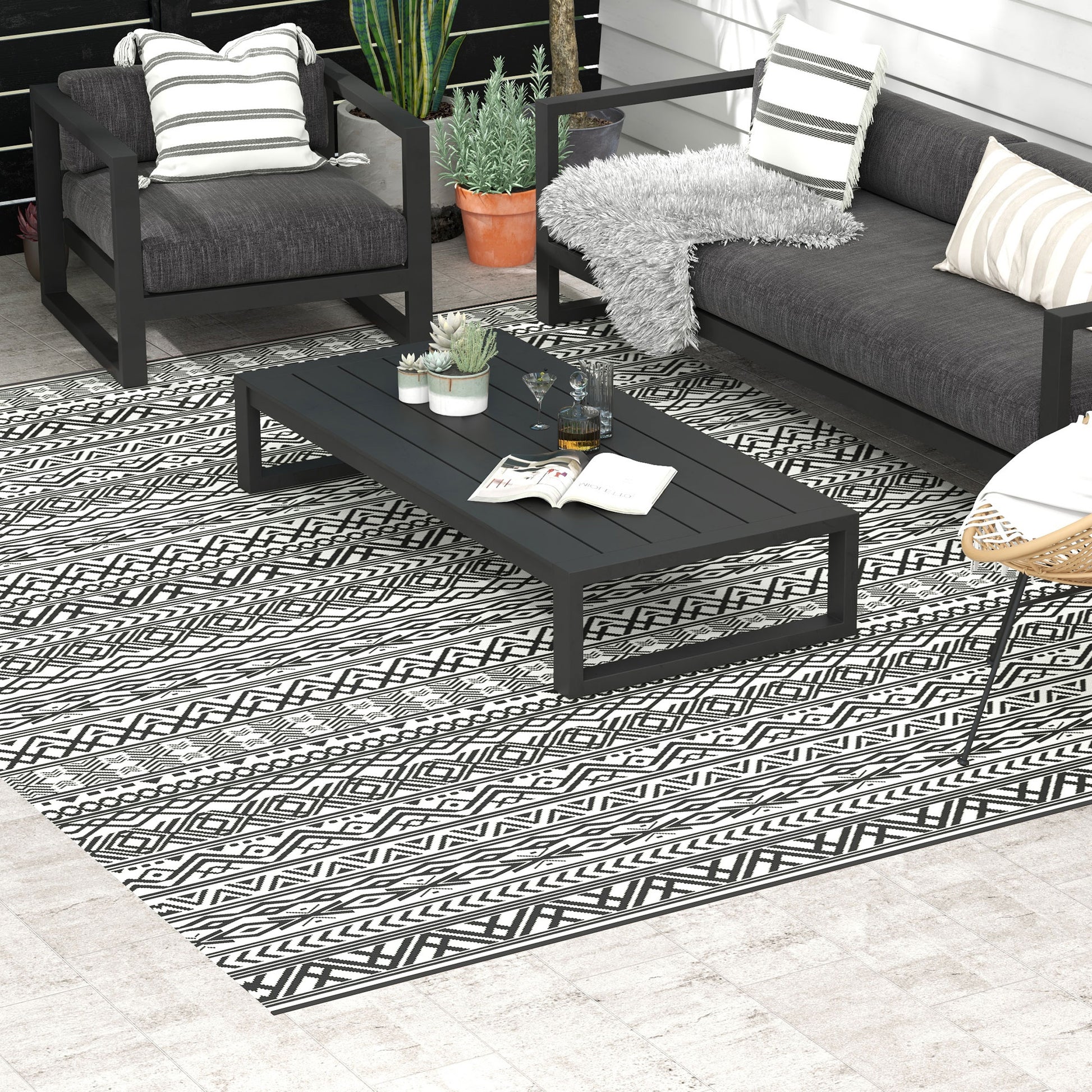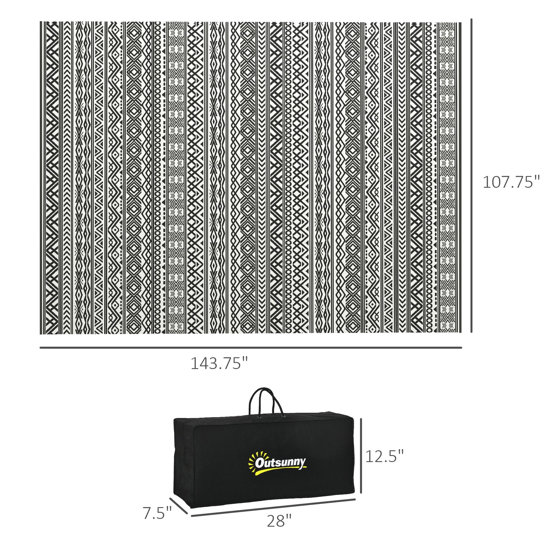 Outsunny Reversible Outdoor Rug, 9' X 12' Waterproof Plastic Straw Floor Mat, Portable Rv Camping Carpet With Carry Bag, Large Floor Mat For Backyard, Deck, Picnic, Beach, Gray & Cream White Boho