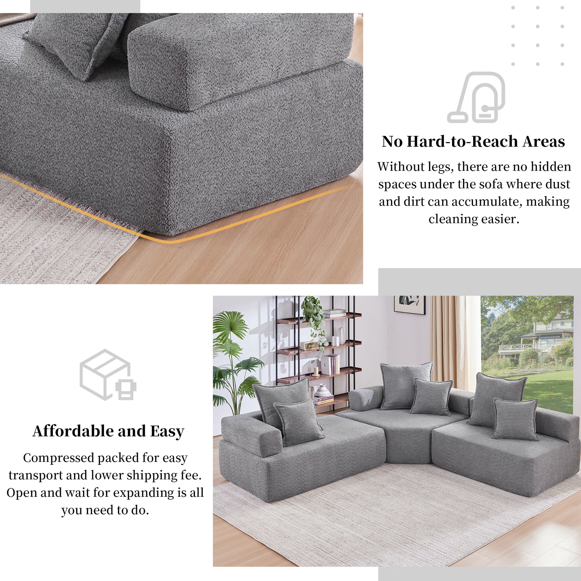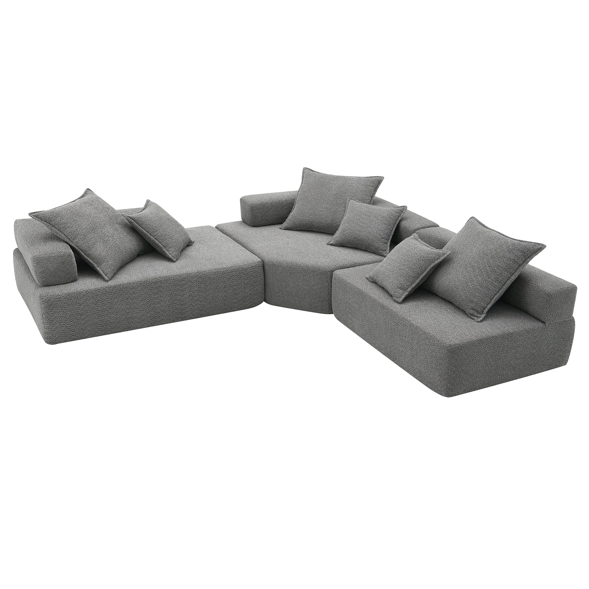 Oversized Modular L Shaped Sectional Sofa,Luxury Boucle Floor Couch Set,Convertible Sleeper Couch,Spacious Foam Filled Sofa Bed For Living Room,3 Pc Free Combination,2 Colors Gray Boucle 5 Seat