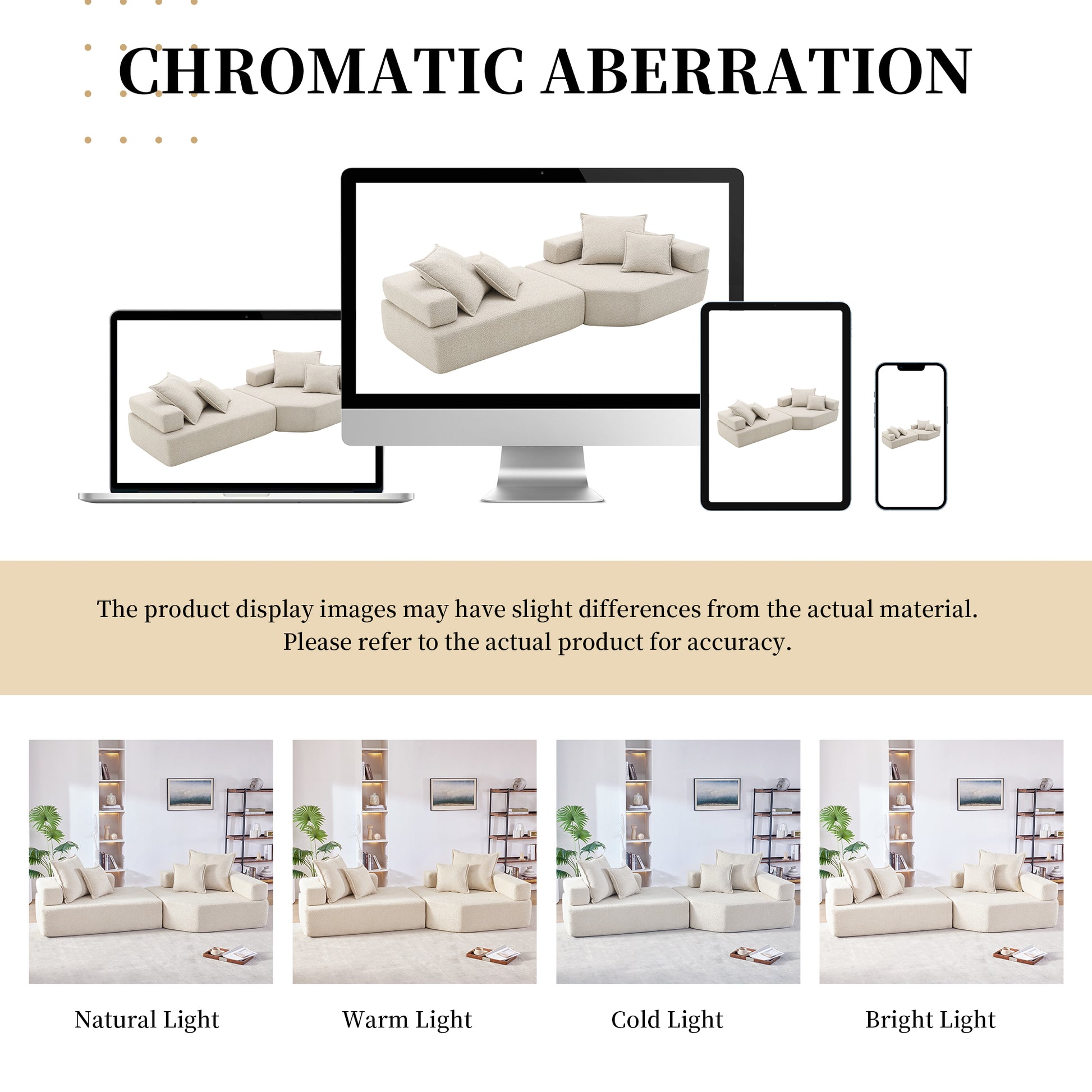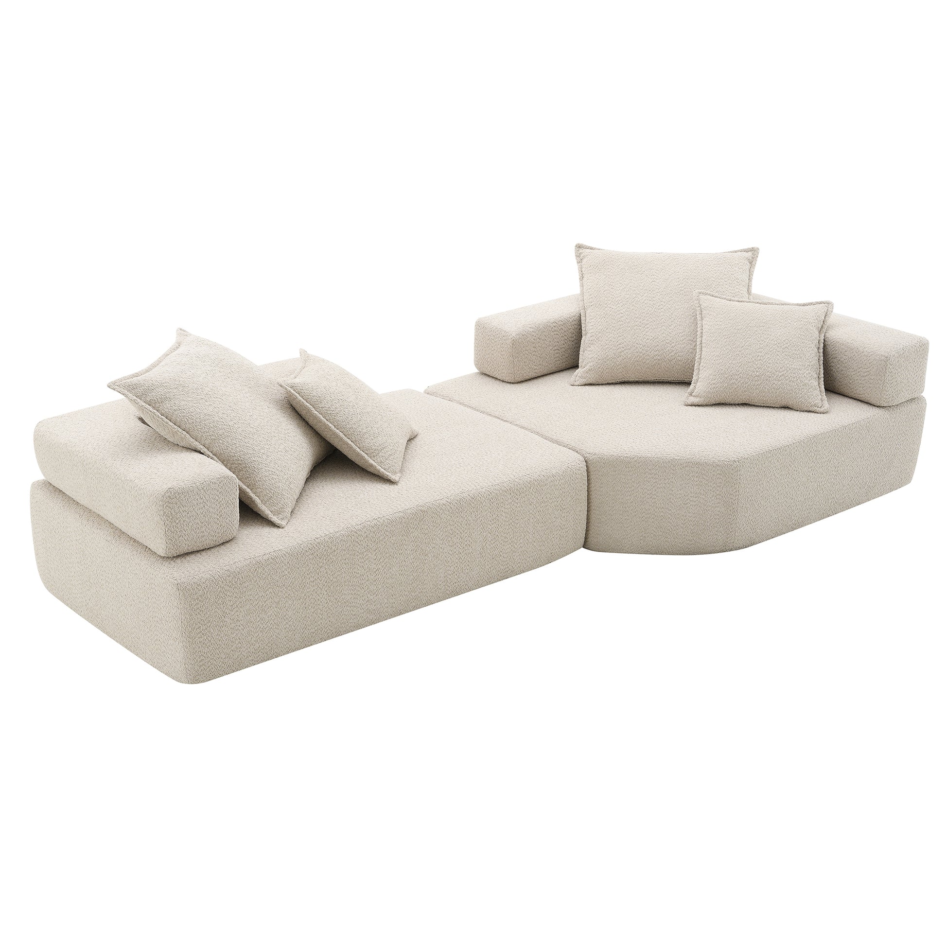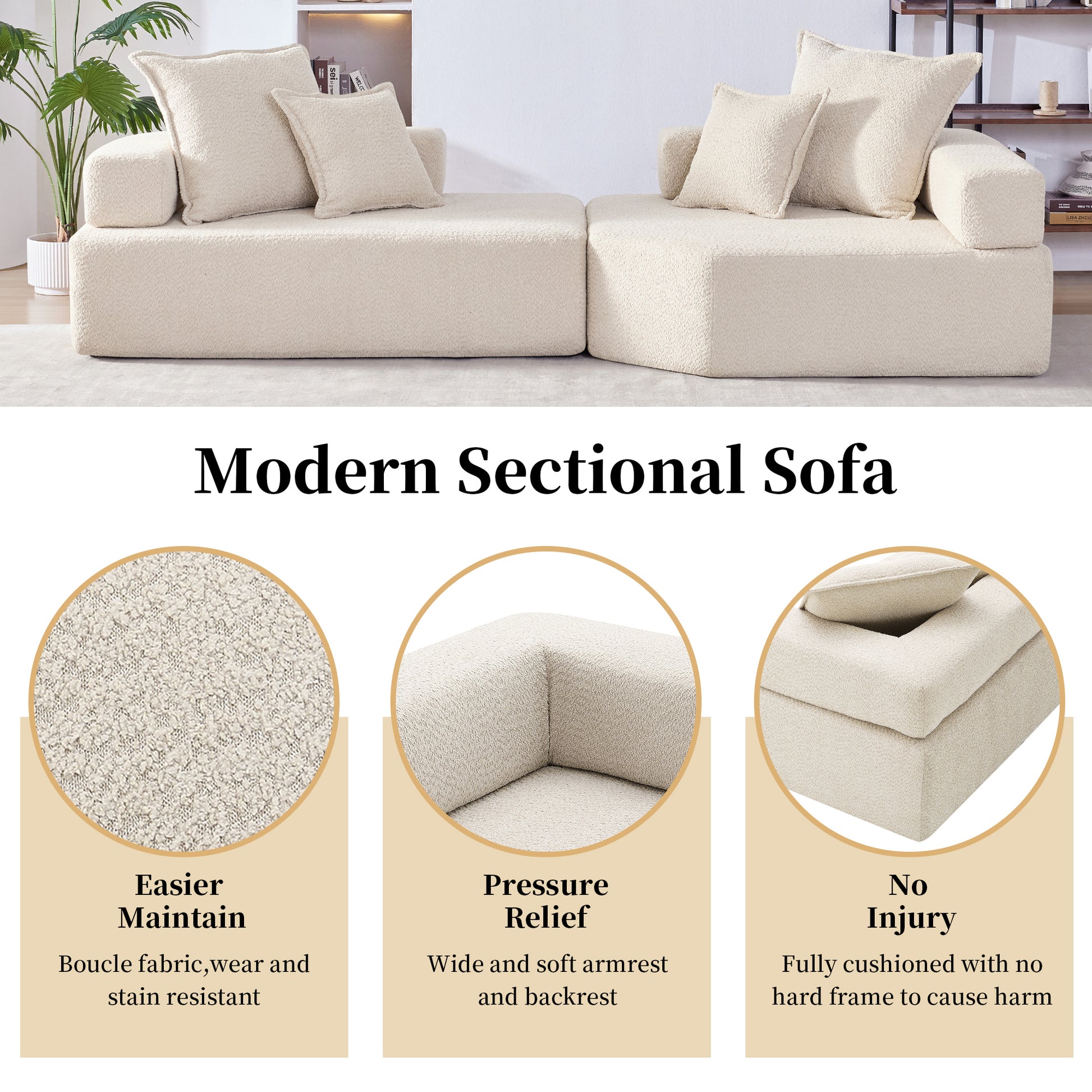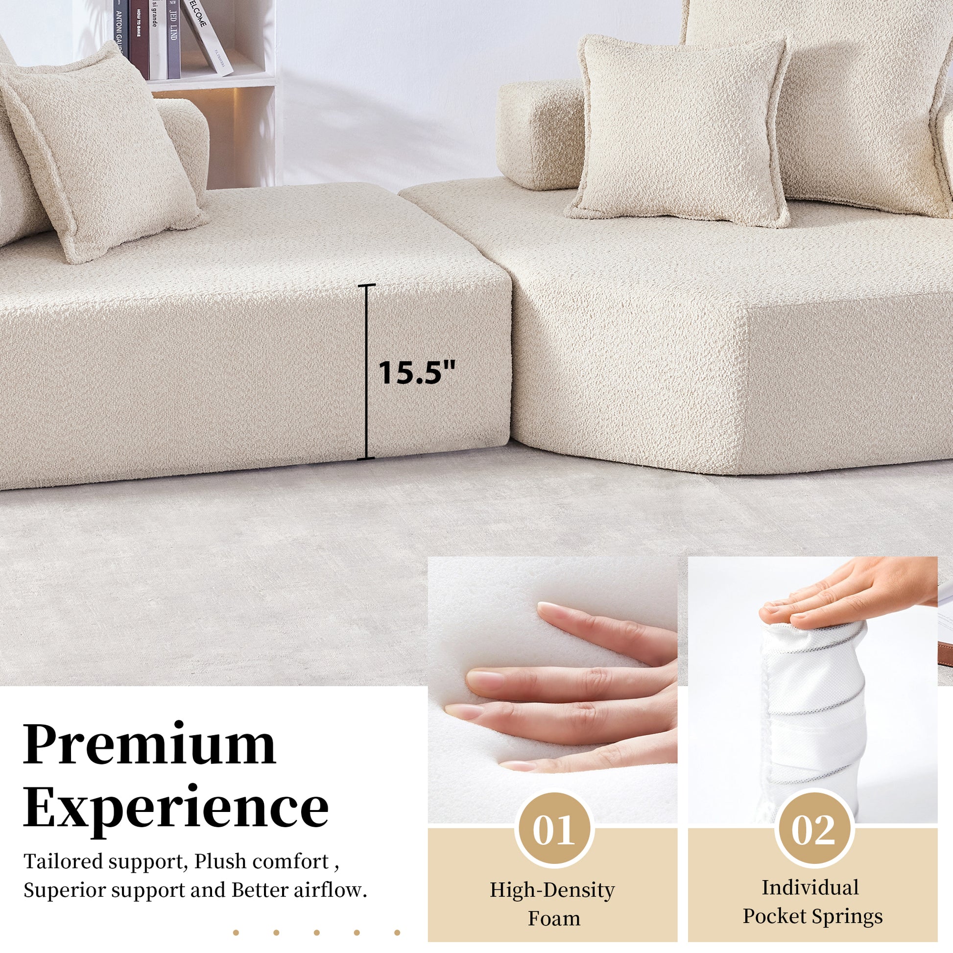 Oversized Modular Sectional Sofa,Luxury Boucle Floor Couch Set,Convertible Sleeper Couch,Spacious Foam Filled Sofa Bed For Living Room,2 Pc Free Combination,2 Colors Beige Boucle 4 Seat