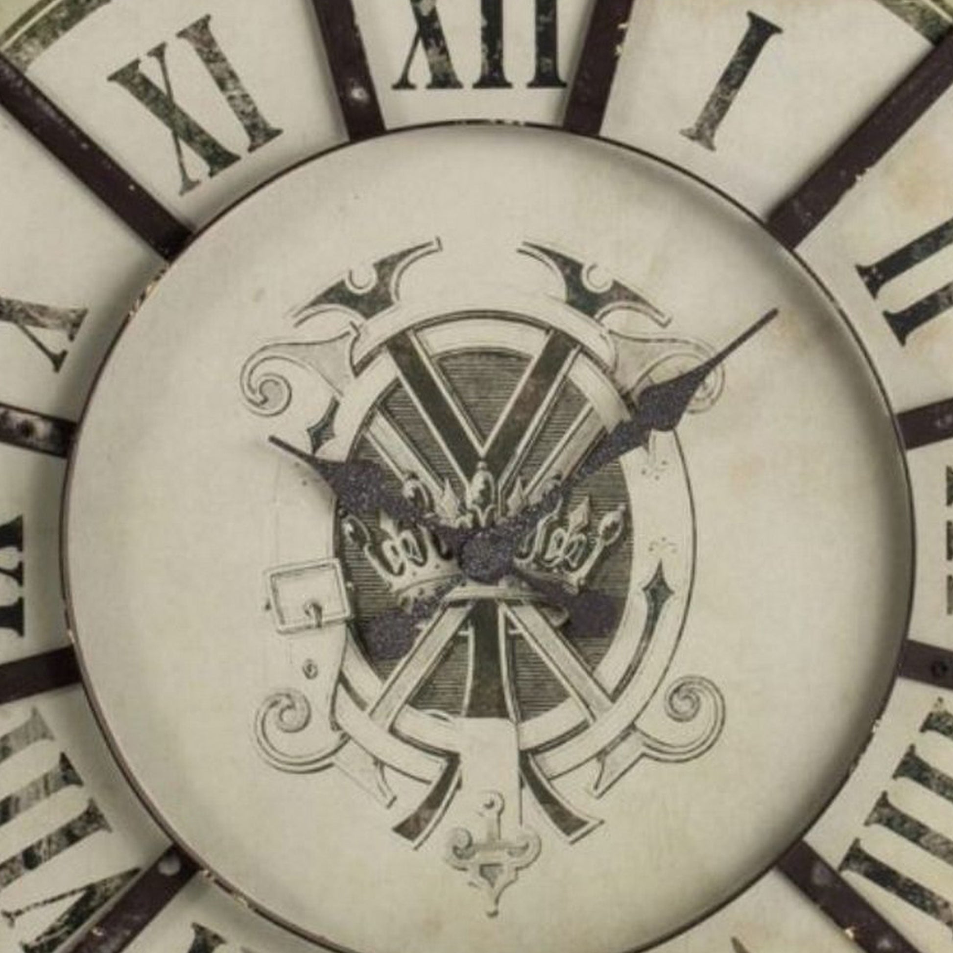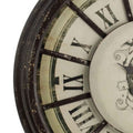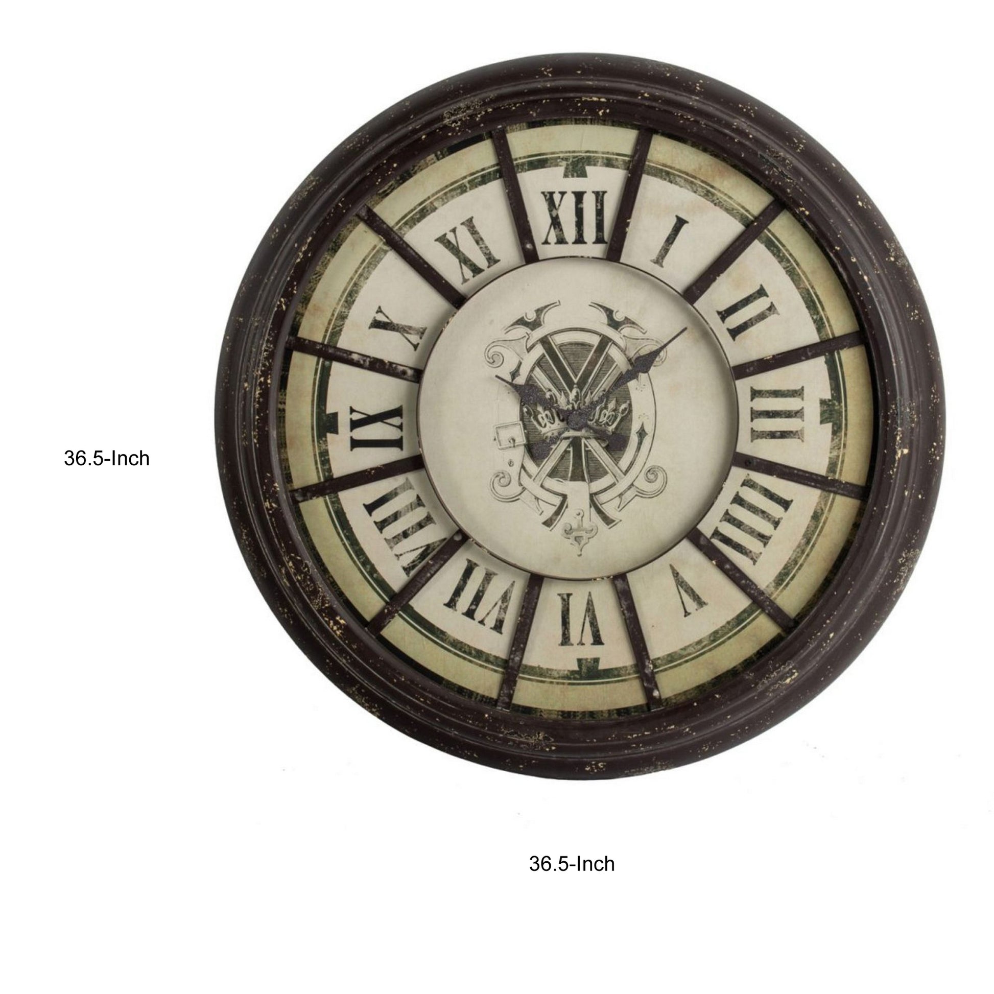 Oversized Wood And Metal Wall Clock With Distressed Details, Antique Gray And Cream Brown Wood