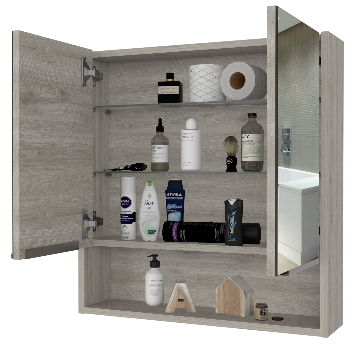 Ozark 24" Medicine Cabinet With Mirror, One Shelf Beige Mdf Engineered Wood