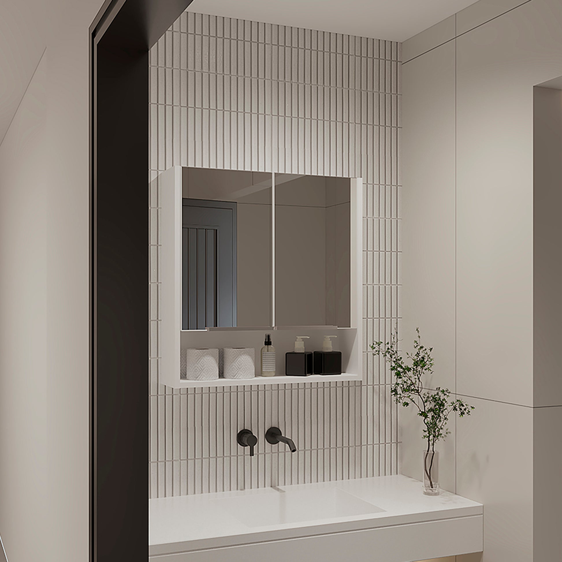 Ozark 24" Medicine Cabinet With Mirror, One Shelf White 2 4 18 To 23 In 24 To 31 In Mirror Included Bathroom Wall Mounted Modern 5 10 Inches Melamine Engineered Wood