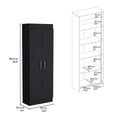 Pantry Cabinet 67" H, 5 Internal Shelves, Two Doors, Black Black Particle Board Pine