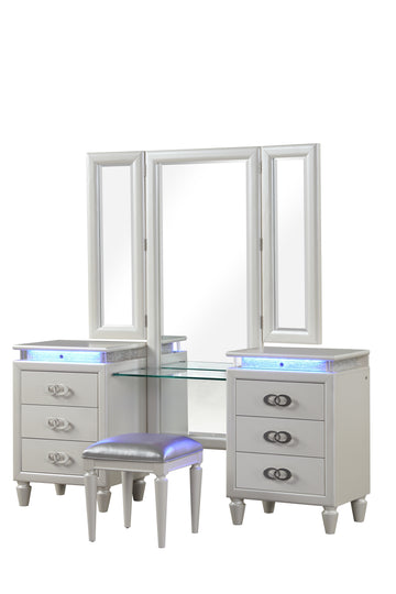 Passion Led Vanity Set Made With Wood In Milky White White Bedroom Modern Wood