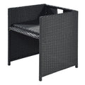 Patio All Weather Pe Wicker Dining Table Set With Wood Tabletop For 8, Black Rattan Beige Cushion 9 Piece No Complete Patio Set Black Water Resistant Frame Water Resistant Cushion Garden & Outdoor Casual Complete Patio Sets Foam Rattan