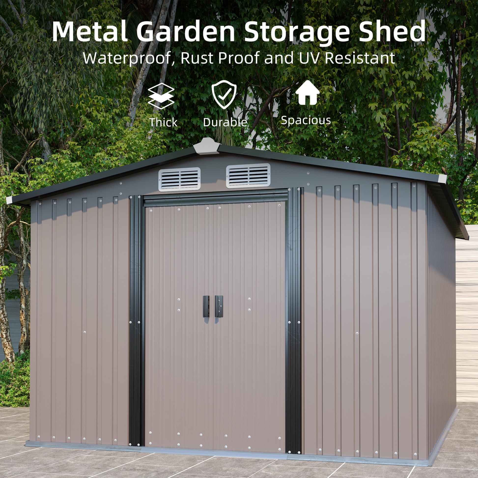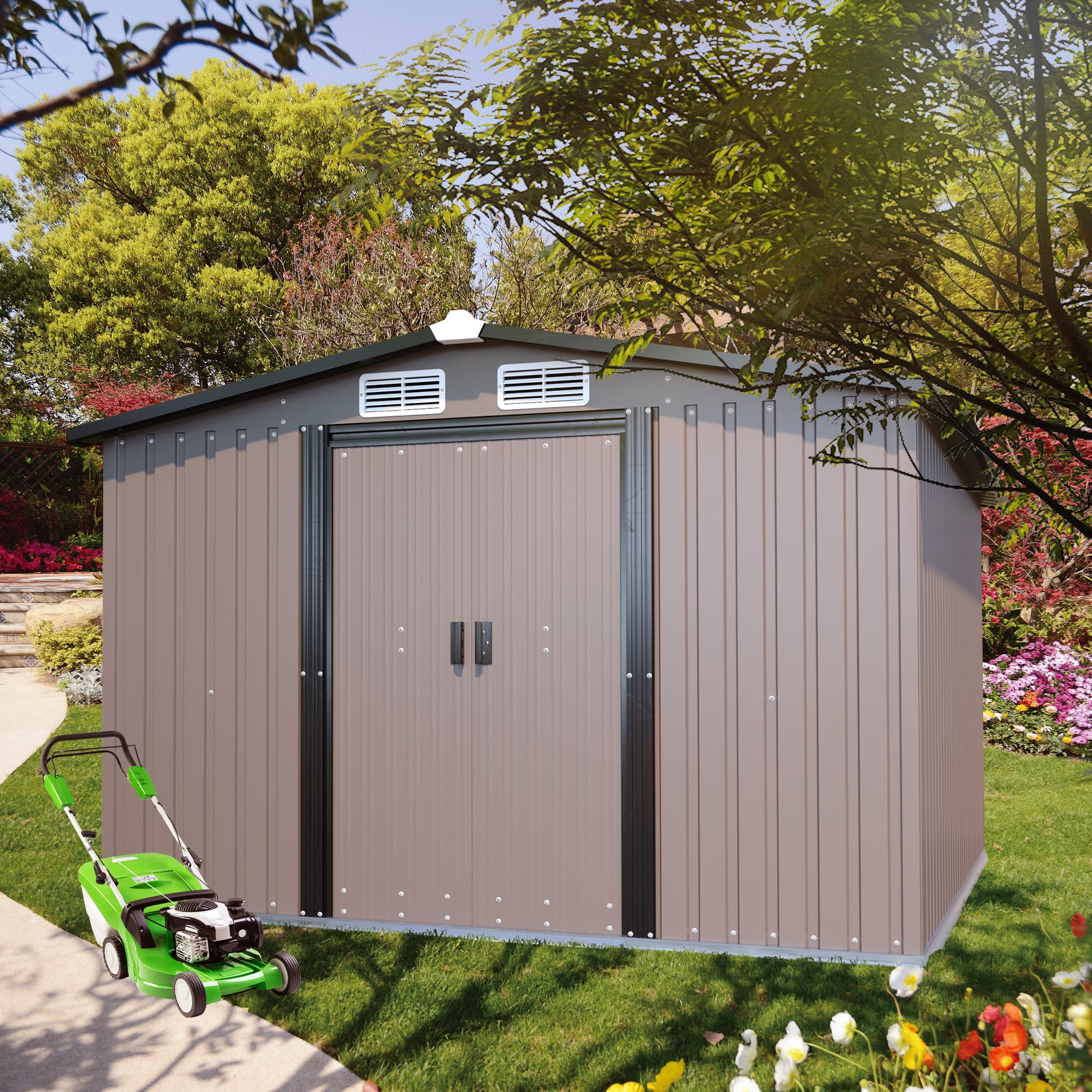 Patio, Lawn & Garden,Metal Outdoor Storage Shed 10Ft X 8Ft, Clearance With Lockable Door Metal Garden Shed Steel Anti Corrosion Storage House Waterproof Tool Shed For Backyard Patio, Lawn And Garden Brown Year Round Use Metal