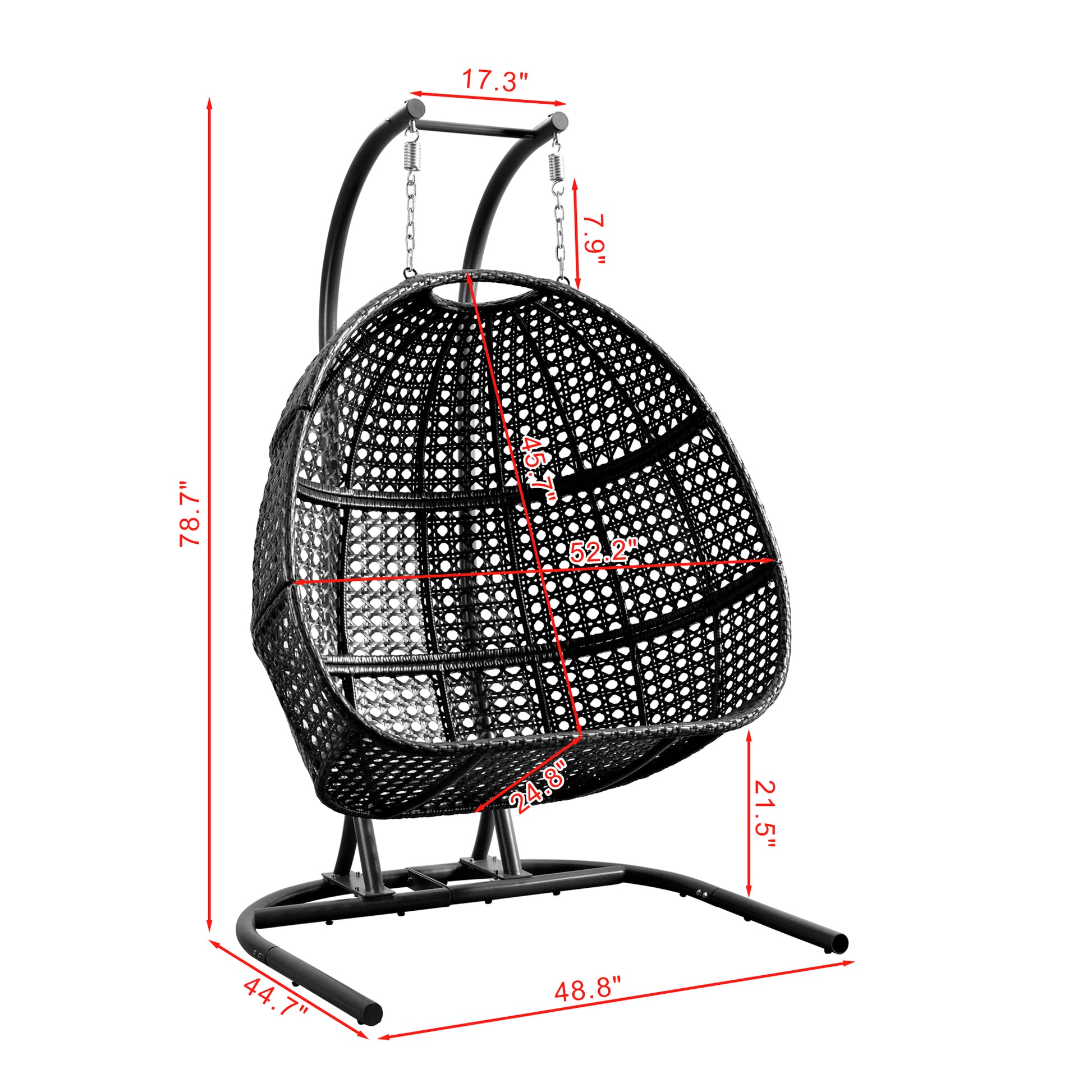 Patio Pe Rattan Double Swing Chair With Stand, Two Person Hanging Chair For Balcony, Courtyard Grey Steel