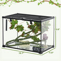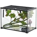 Pawhut 14 Gallon Reptile Glass Terrarium Tank With Decor Kit, Breeding Box Full View With Visually Appealing Sliding Screen Top For Lizards, Frogs, Snakes, Spiders, 20" X 12" X 14", Black Black Glass