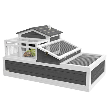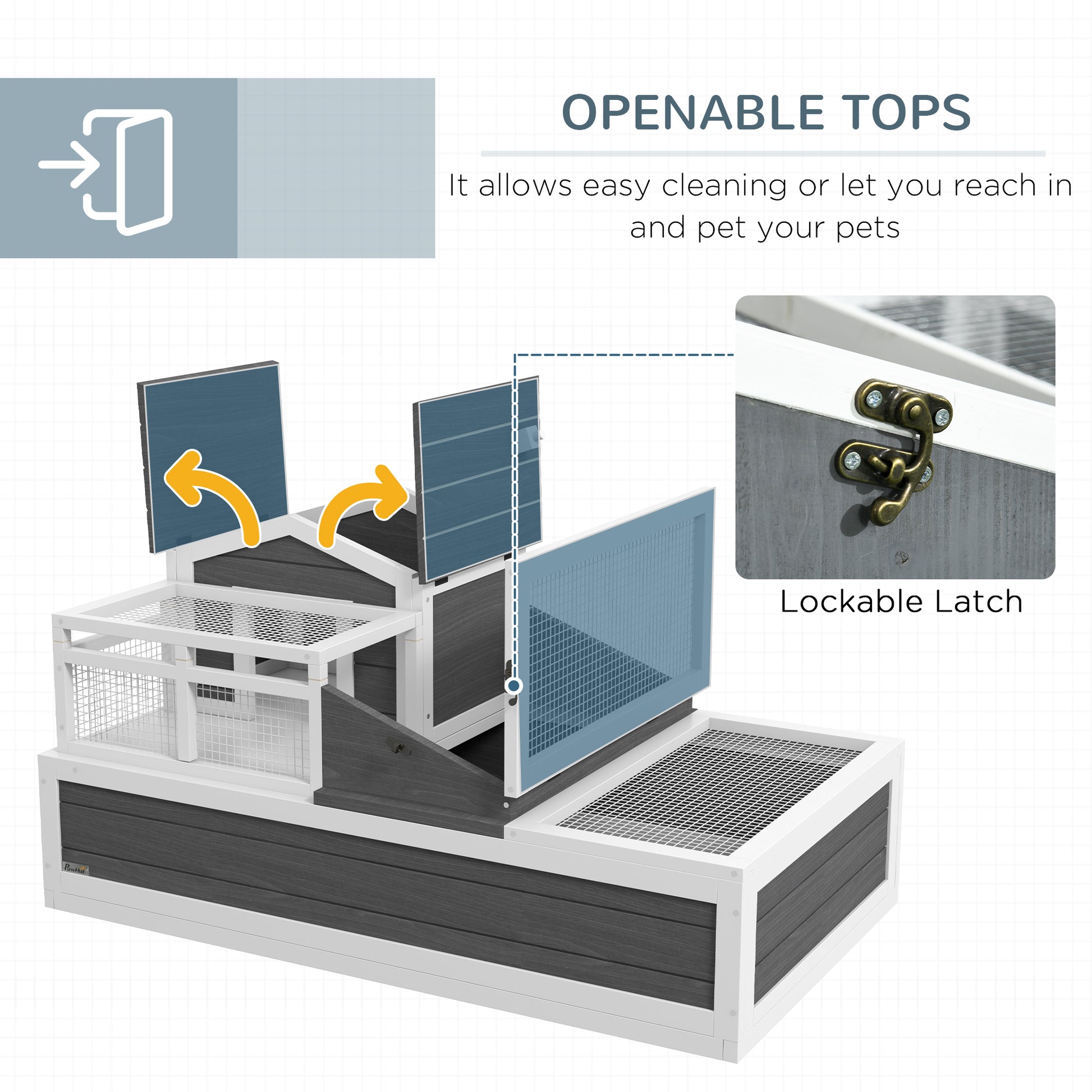 Pawhut 3 Room Tortoise House Habitat With Balcony & 2 Stories, Indoor Outdoor Wooden Tortoise Enclosure With Ladder, Tray, Openable Roof, Large Reptile Cage, 44" X 25.5" X 23", Gray Dark Grey Wood