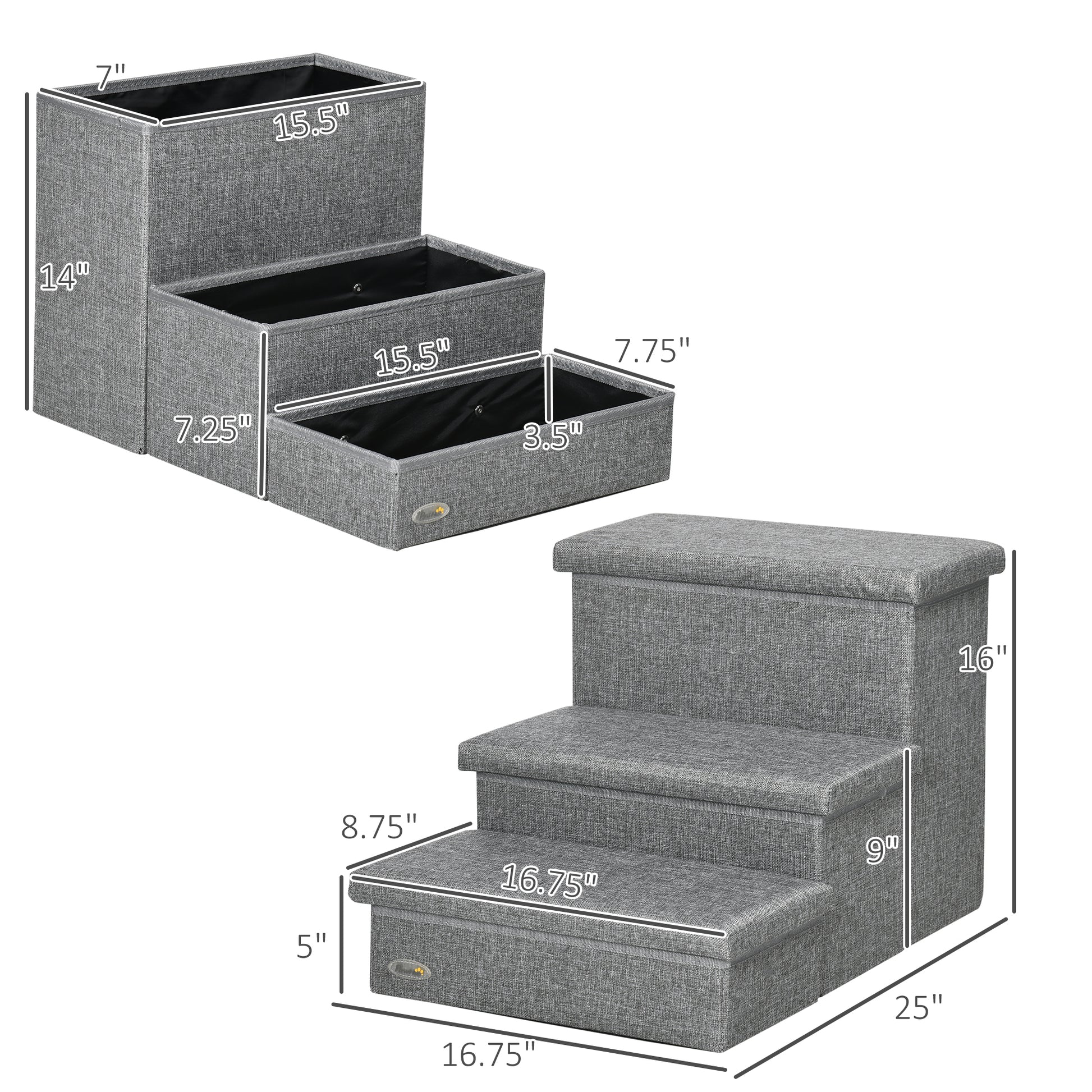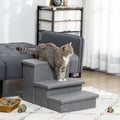 Pawhut 3 Steps Pet Stairs With Storage, Dog Steps For Couch, Bed, Pet Steps For Injured Pet, Older Pets, Small Cats, Gray Gray Mdf