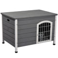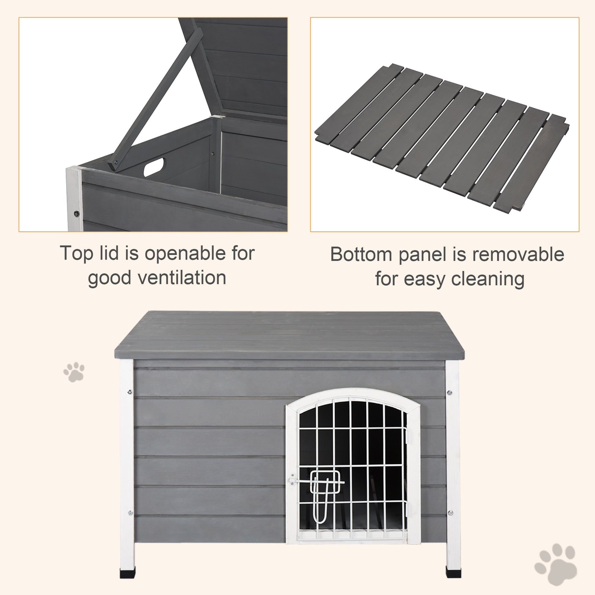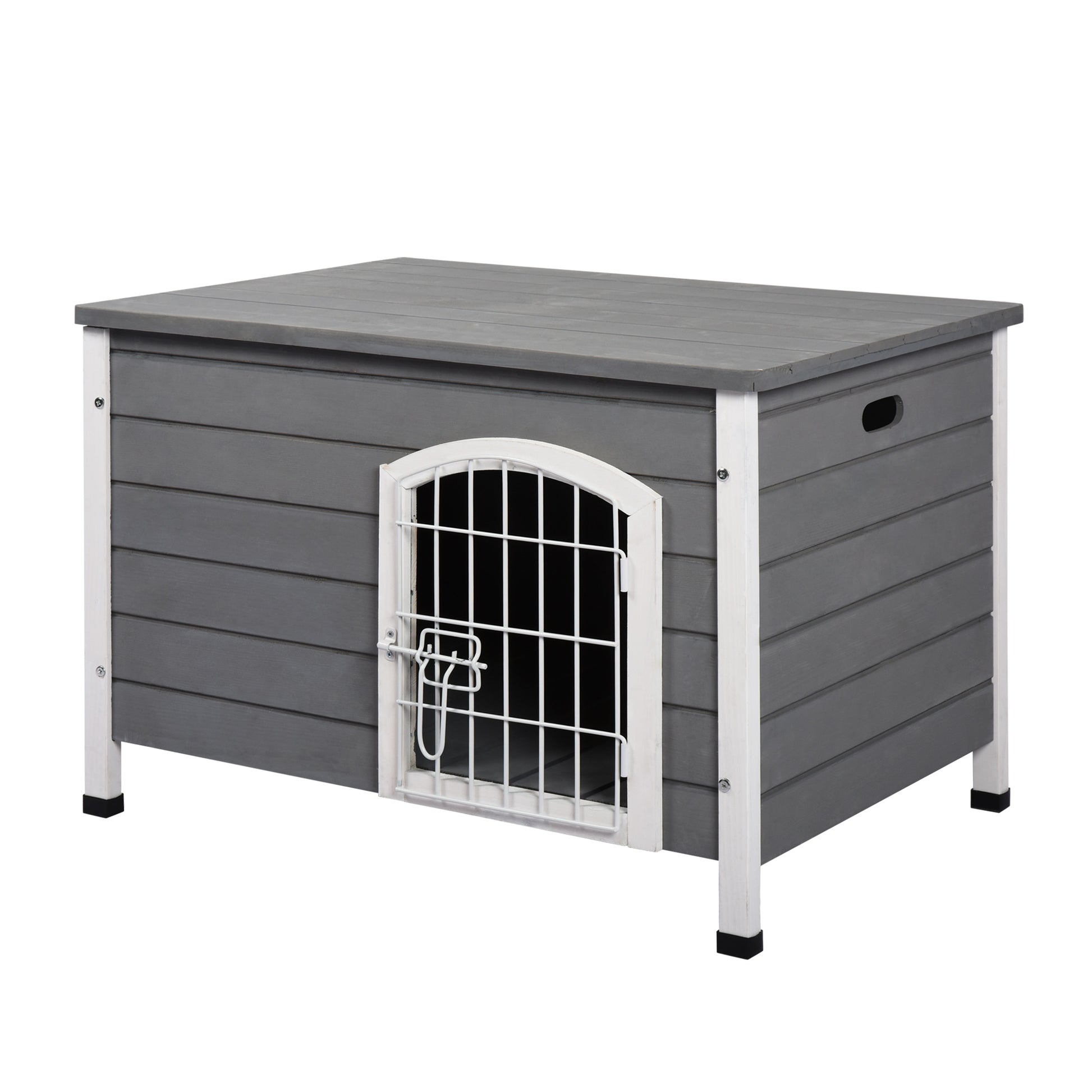 Pawhut 31"L Wooden Decorative Dog Cage Kennel Wire Door With Lock Small Animal House With Openable Top Removable Bottom Grey Gray Wood