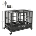 Pawhut 36" Heavy Duty Dog Crate Metal Cage Kennel With Lockable Wheels, Double Door And Removable Tray, Gray Grey Steel