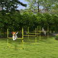 Pawhut 4 Piece Dog Agility Training Equipment For Dog Agility Course With Adjustable Height Jump Bars, Included Carry Bag, & Displacing Top Bar, Yellow Yellow Plastic