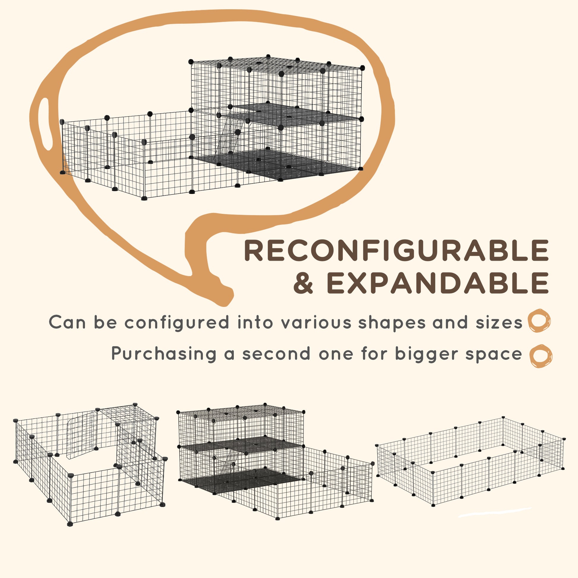 Pawhut 47 Panels Pet Playpen, Small Animal Playpen With Doors, Portable Metal Wire Yard Bunny Pen For Guinea Pigs, Chinchillas, 14" X 14" Black Steel