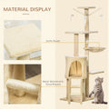 Pawhut 53" Plush Sturdy Interactive Cat Condo Tower Scratching Post Activity Tree House Beige Beige Mdf