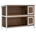 Pawhut 54" 2 Story Large Rabbit Hutch Bunny Cage Wooden Pet House Small Animal Habitat With Lockable Doors, No Leak Tray And Waterproof Roof For Outdoor Indoor Brown Coffee Wood