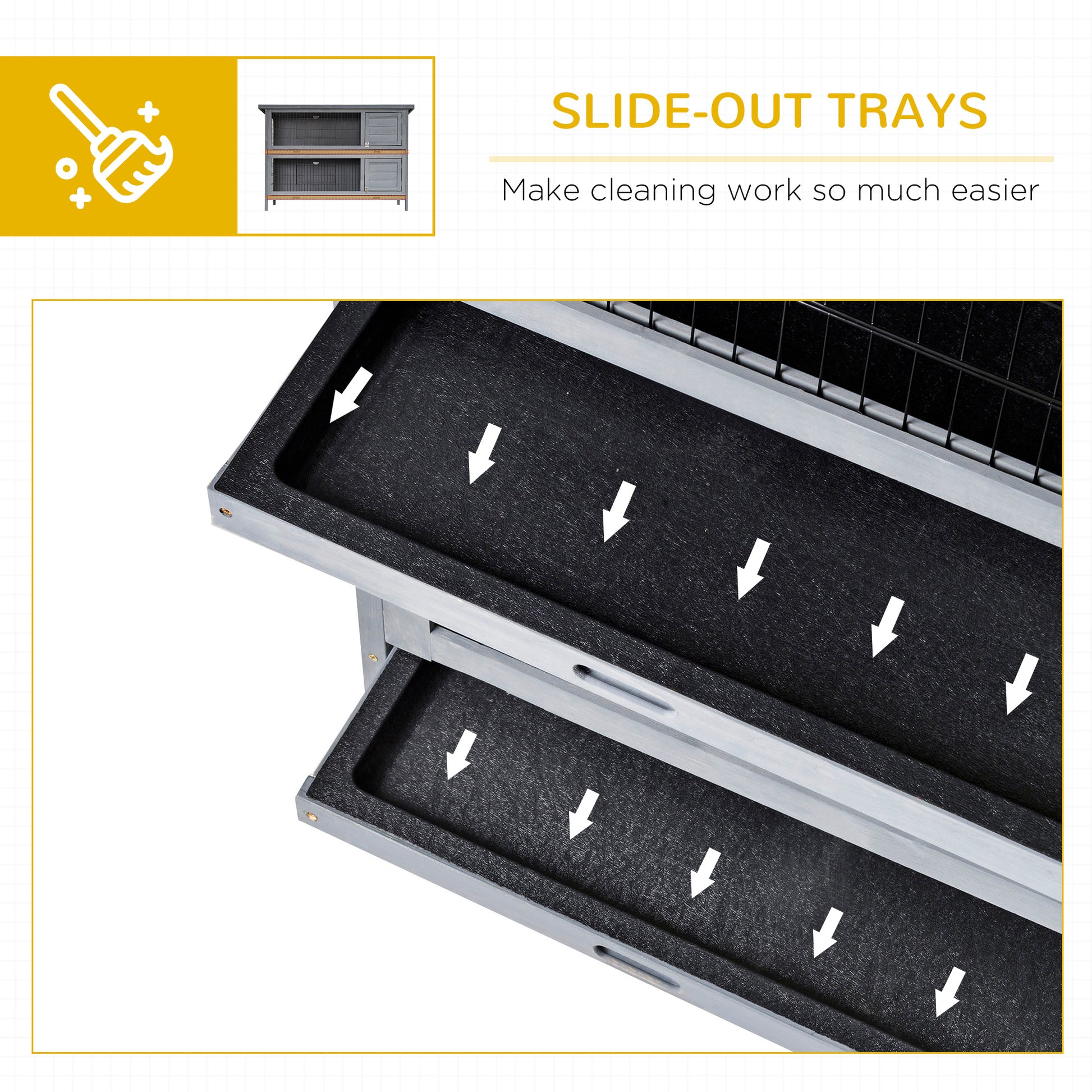 Pawhut 54" 2 Story Large Rabbit Hutch Bunny Cage Wooden Pet House Small Animal Habitat With Lockable Doors, No Leak Tray And Waterproof Roof For Outdoor Indoor Grey Gray Wood