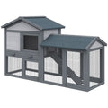 Pawhut 58" Rabbit Hutch, Wooden Bunny Hutch, Guinea Pig Cage, Small Animal Enclosure With Run Area, Removable Tray, Asphalt Roof, Lockable Doors And Ramp, Dark Gray Grey Wood