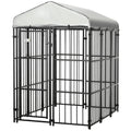 Pawhut 6' X 4' Dog Kennel, Outdoor Dog Playpen Run With Waterproof, Uv Resistant Canopy, Heavy Duty Chain Link For Medium And Large Dogs Black Steel