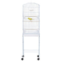 Pawhut 60" Metal Indoor Bird Cage Starter Kit With Detachable Rolling Stand, Storage Basket, And Accessories, White White Steel