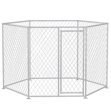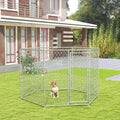 Pawhut 9.2' X 8' X 5.6' Dog Kennel, Outdoor Dog Run With Lockable Door For Medium And Large Sized Dogs, Silver Silver Steel