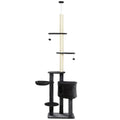 Pawhut Adjustable Height Floor To Ceiling Vertical Cat Tree With Carpet Platforms, Condo & Rope Scratching Areas, Dark Grey Gray Particle Board