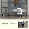 Pawhut Cat House, Indoor Cat Enclosure On Wheels, Wooden Kitty Cage With Cat Flap Door, Platforms Hammock & Openable Top For 2 Cats, 39" Gray Wood
