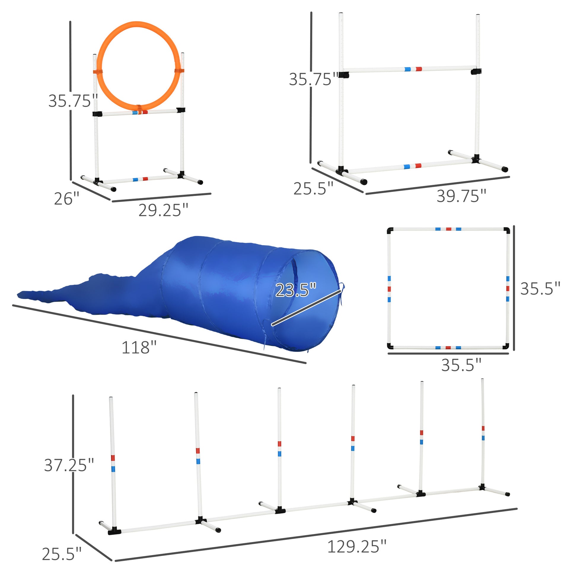 Pawhut Dog Agility Equipments, 5 Pieces Obstacle Courses Training Starter Kit, Pet Outdoor Games Of Tunnel, Dog Jump, Hoop, Weave Poles, Pause Box And Easy Carry Case White Polypropylene