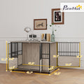 Pawhut Dog Crate Furniture, Decorative Dog Kennel Indoor End Table With Double Doors, Multi Purpose Pet Crate For Small To Large Dogs Up To 88 Lb, 46"L, Walnut Wood Finish Espresso Particle Board