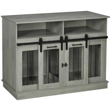 Pawhut Dog Crate Furniture For Large Dogs Or Double Dog Kennel For Small Dogs With Shelves, Sliding Doors, 47" X 23.5" X 35", Gray Gray Steel