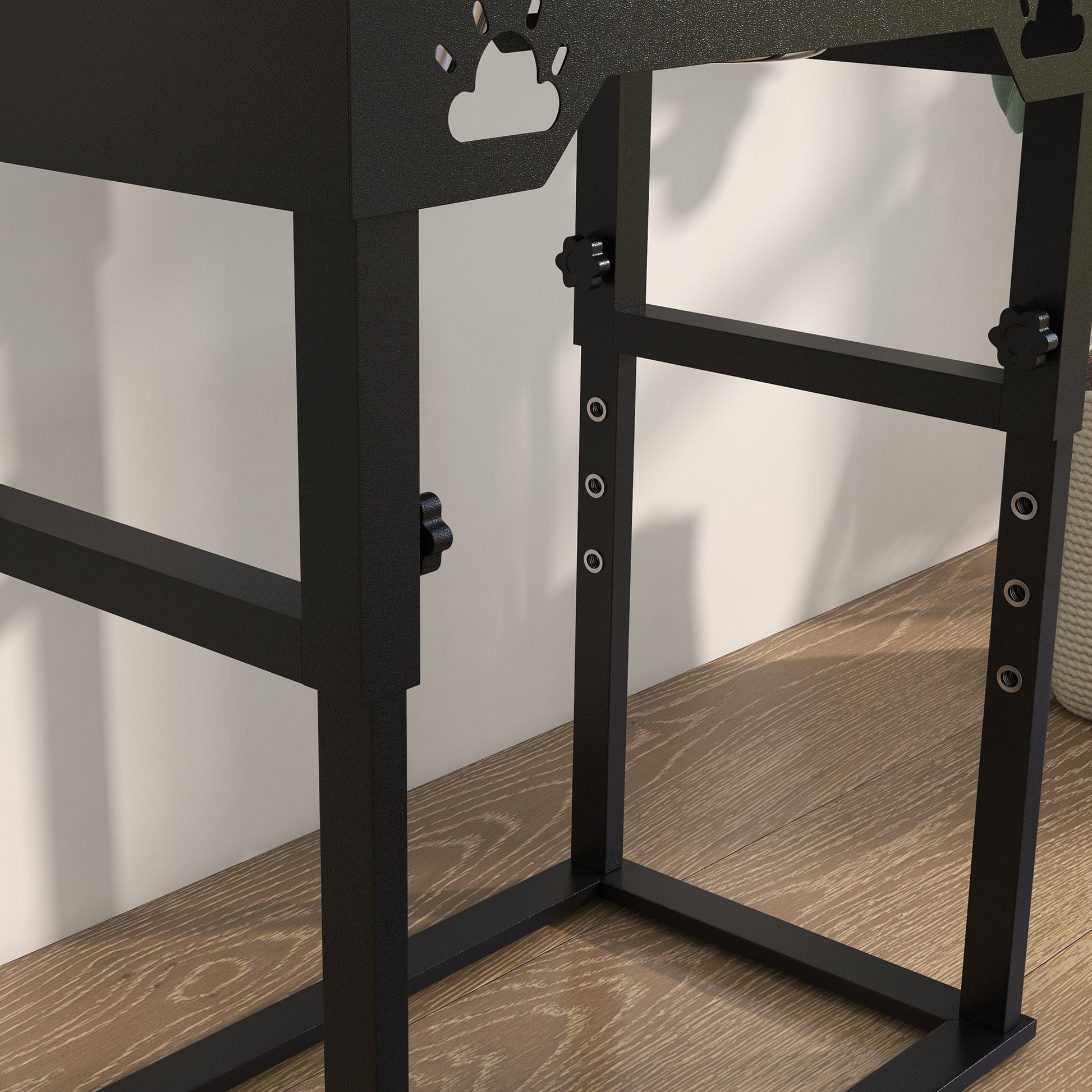 Pawhut Elevated Dog Bowls, 7 Adjustable Height Dog Bowl Stand With 2 Stainless Steel Bowls For Small, Medium, And Large Dogs, Black Black Steel
