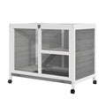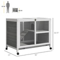 Pawhut Indoor Rabbit Hutch With Wheels, Desk And Side Table Sized, Wood Rabbit Cage, Waterproof Small Rabbit Cage, Gray Grey Wood