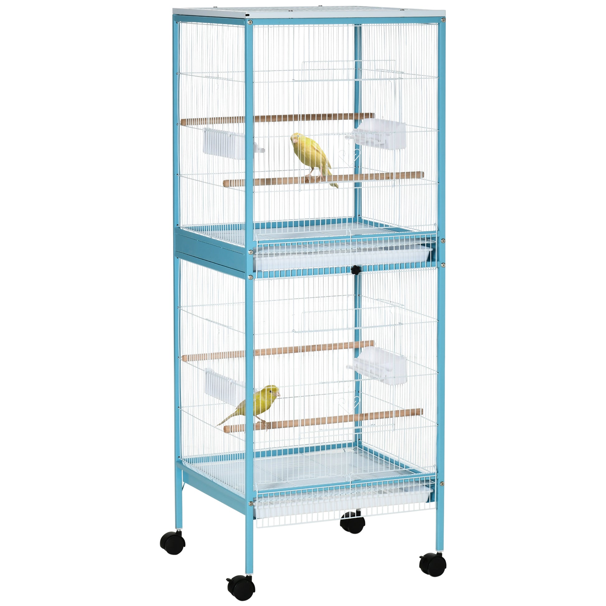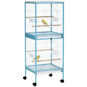 Pawhut Large Bird Cage With 1.7 Ft. Width For Wingspan, Bird Aviary Indoor With Multi Door Design, Fit For A Canary, Finch, Conure, 55", Light Blue Light Blue Steel