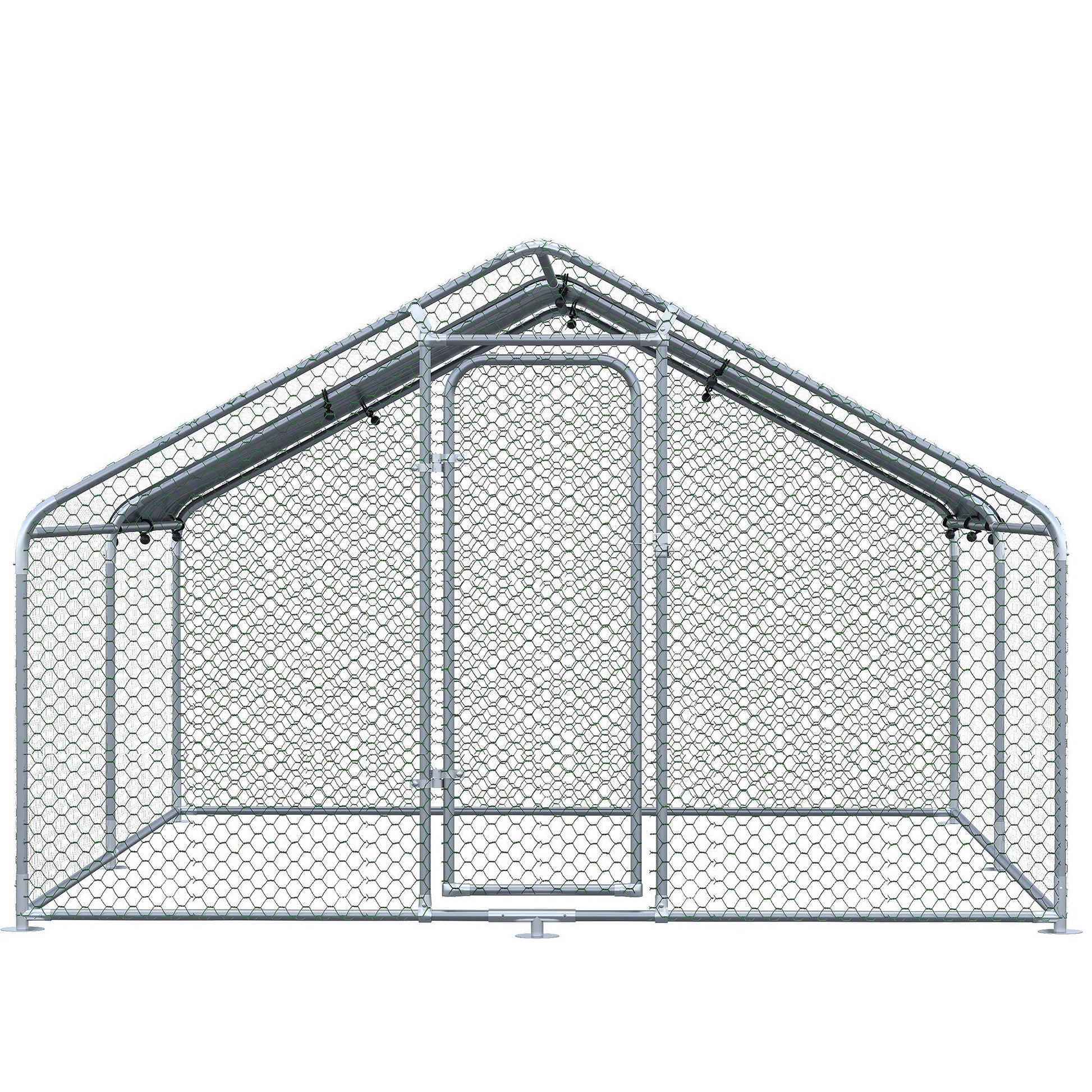 Pawhut Large Chicken Coop Metal Chicken Run With Waterproof And Anti U Cover, Spire Shaped Walk In Fence Cage Hen House For Outdoor And Yard Farm Use, 1.26" Tube Diameter, 9.8' X 13.1' X 6.4' Silver Steel