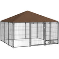 Pawhut Outside Dog Kennel, 6.9' X 6.9' X 5' Puppy Play Pen With Canopy, Garden Playpen Fence Crate Enclosure Cage Rotating Bowl, Coffee Coffee Metal