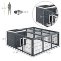Pawhut Rabbit Hutch Bunny Cage With Openable Main House, Indoor Outdoor Waterproof Rabbit House, Guinea Pig Cage For Small Animals With Three Ventilation Doors, Gray Gray Wood