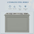 Pawhut Raised Pet Feeding Storage Station With 2 Stainless Steel Bowls Base For Large Dogs And Other Large Pets, Gray Gray Mdf