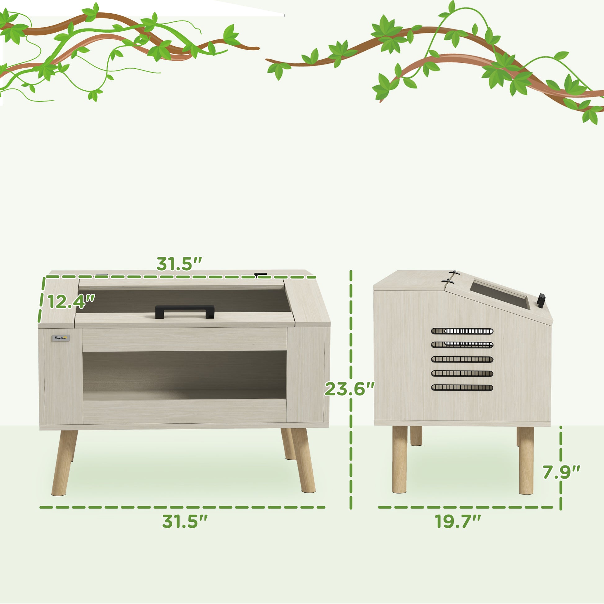 Pawhut Reptile Terrarium 29 Gallon Top Opening Reptile Tank With Glass Windows Air Ventilations, For Snakes Lizards Horned Frogs Chameleons Hamsters Gerbils, 31.5" X 20" X 24" Oak Fabric