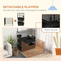 Pawhut Small Animal Cage With Playpen, Multi Level Pet Habitat Indoor For Guinea Pigs Hedgehogs Bunnies With Accessories, Water Bottle, Food Dish, Feeding Trough, 42" X 33" X 36" Black Steel
