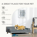 Pawhut Soft Foam Large Dog Couch For A Fancy Dog Bed, Spongy Dog Sofa Bed With Washable Cover, Wooden Legs, Elevated Dog Bed, Gray Grey Wood